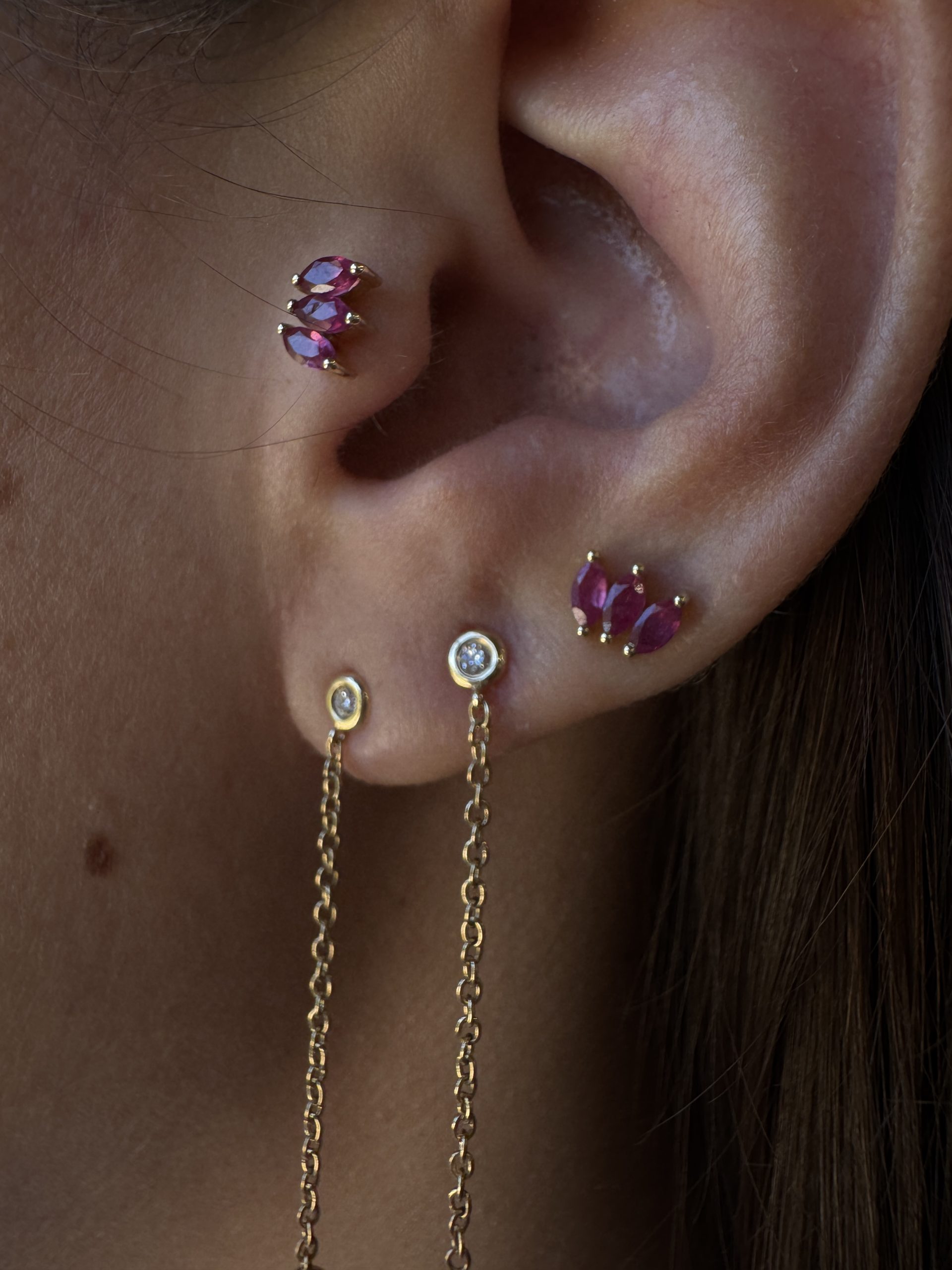 עגיל פירסינג 3 מרקיזות רובי